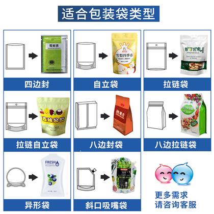 包裝材料:聚酯/聚乙烯、聚酯鍍鋁聚乙烯、聚酯鋁箔聚乙烯、紙聚乙烯、尼龍等可熱封的復(fù)合材料。